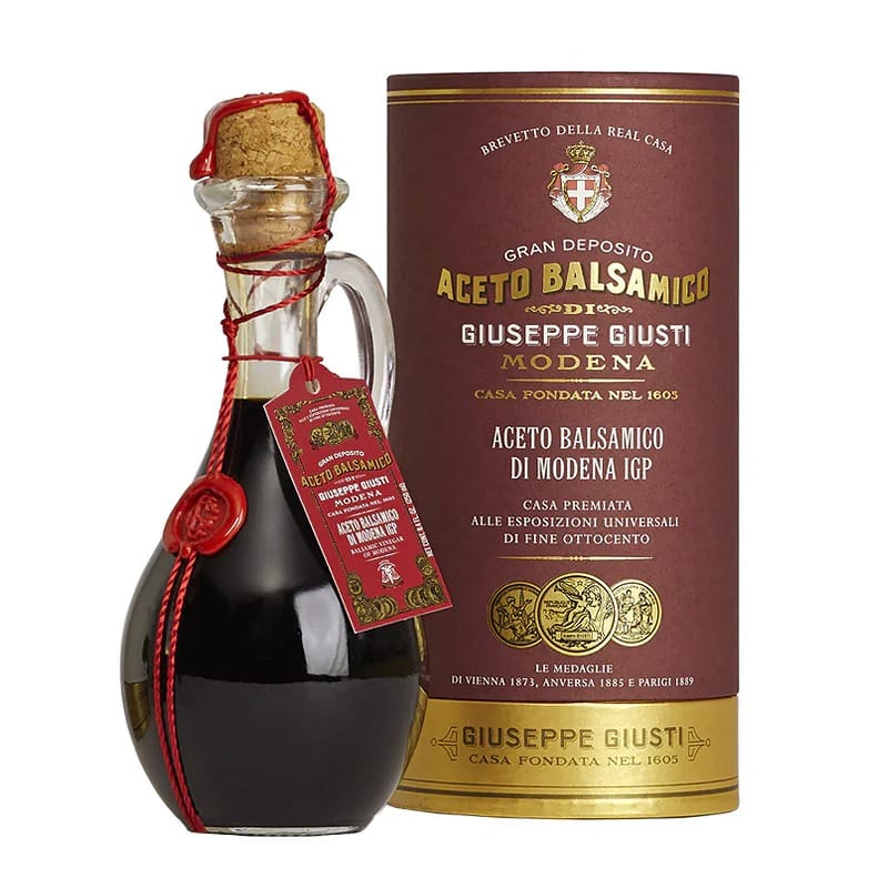 Sinds 1605 produceert de familie Giusti authentieke balsamico in Modena. Met eeuwenoude houten vaten en traditionele rijpingsmethodes behoort Giusti tot de absolute top in de wereld van Aceto Balsamico. De unieke smaak ontstaat door generaties aan vakmanschap en een zorgvuldig bewaakte receptuur.